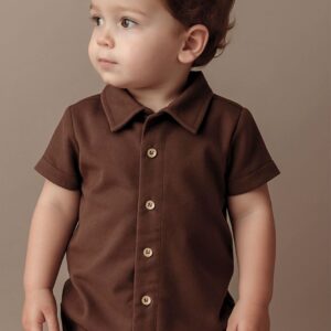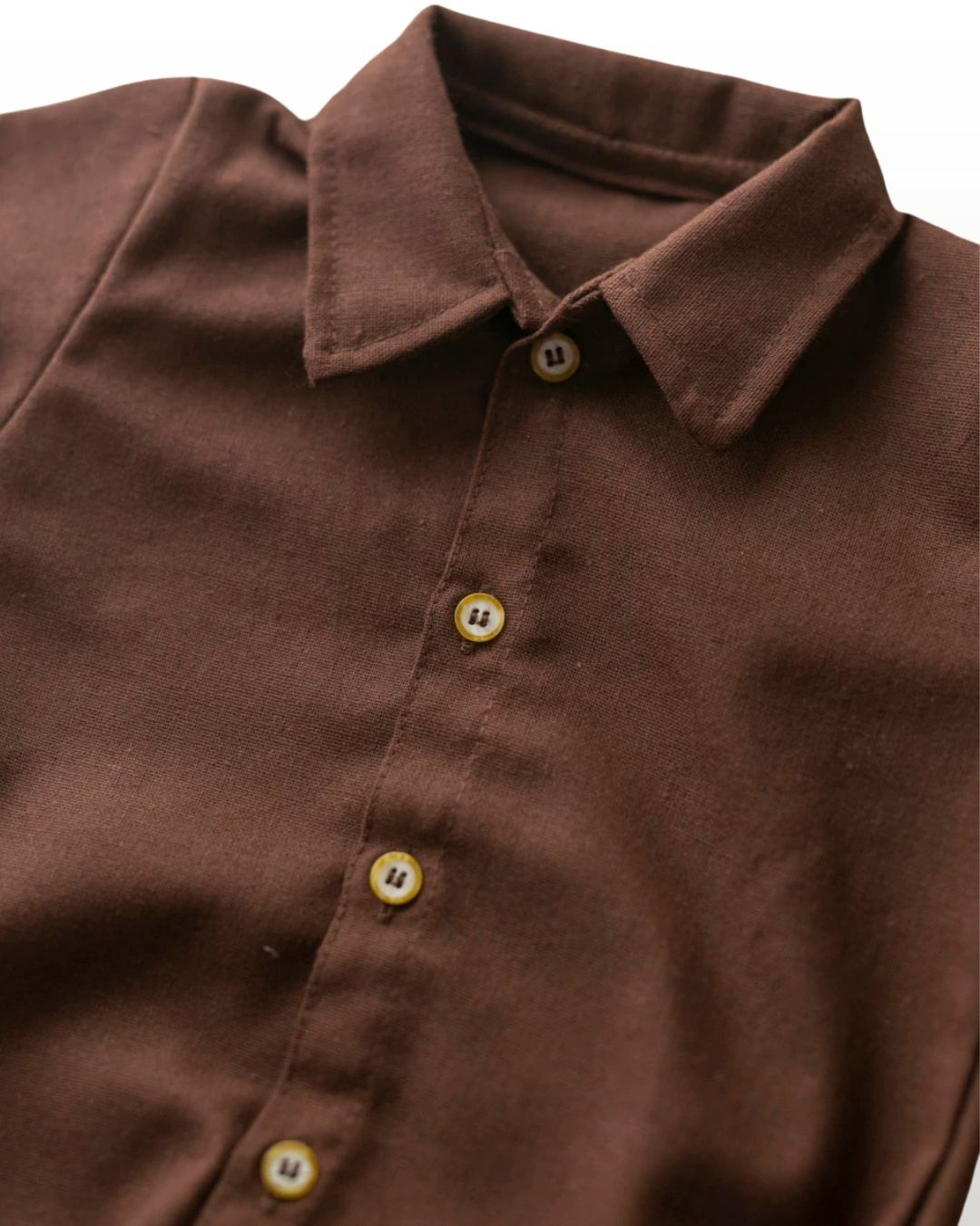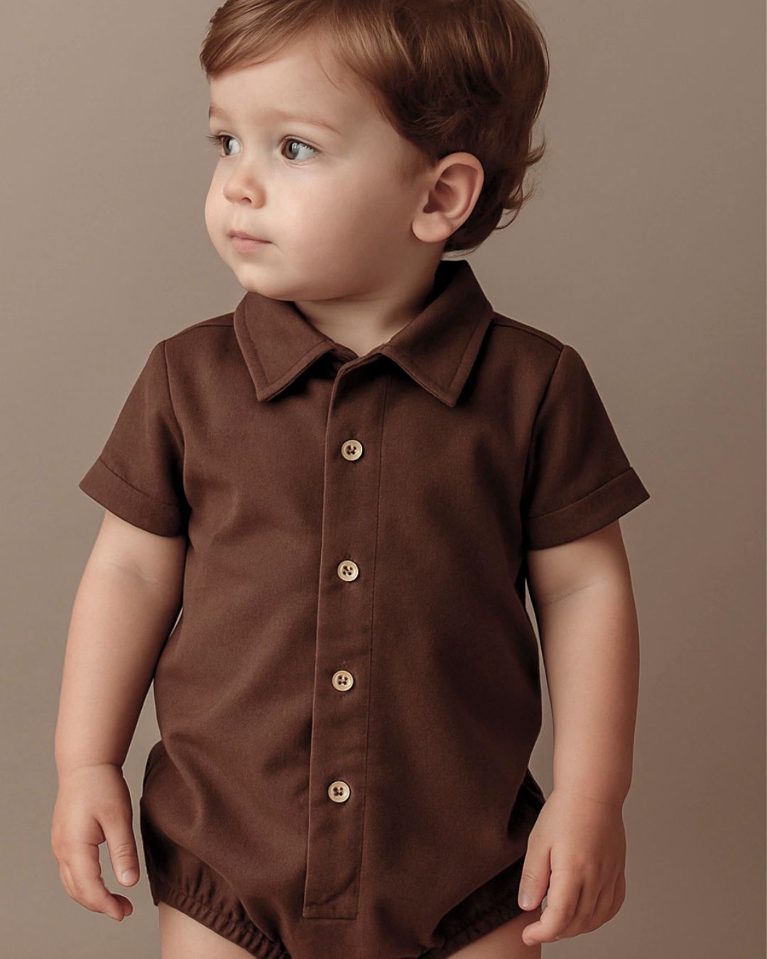 Nosso Romper Bebê Camisa é confeccionado em Linho Misto (50% linho e 50% viscose), de aspecto rústico que garante o conforto e a suavidade para a pele delicada dos pequenos.  Com um design encantador e prático, o romper apresenta fechamento em botões de pressão, facilitando o momento de vestir e trocar a criança.