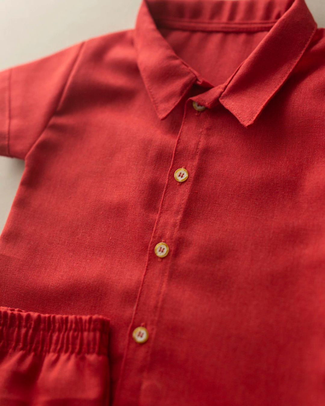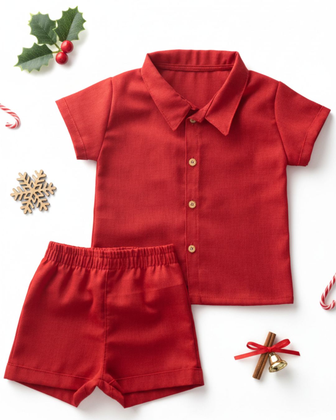 Nosso Conjunto Natal é feito em Linho rústico. A camisa possui o modelo de manga curta com fechamento por botões frontais, colarinho clássico e corte leve para maior conforto. O charme fica por conta do lindo bordado de caixa de presente. Os shorts possuem elástico na cintura para melhor ajuste e liberdade de movimentos.