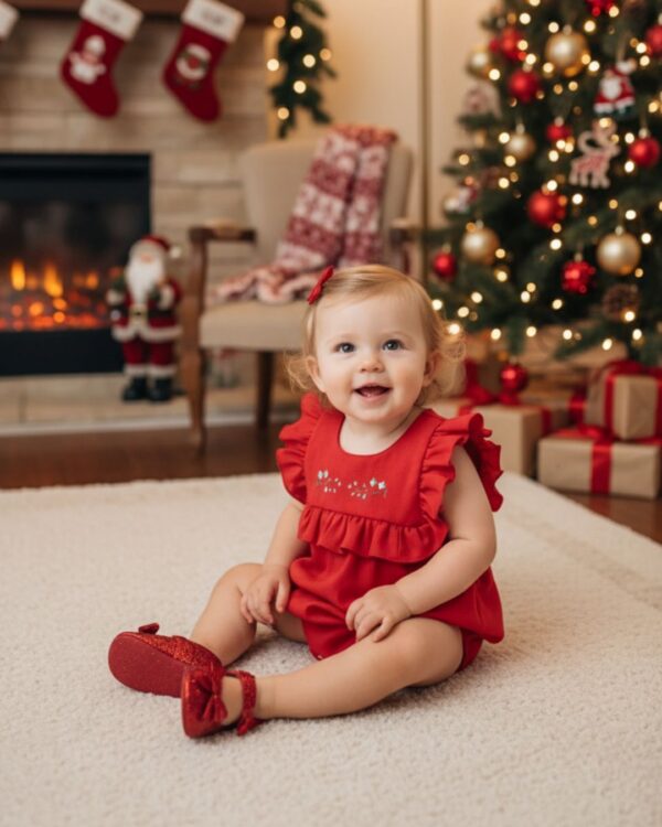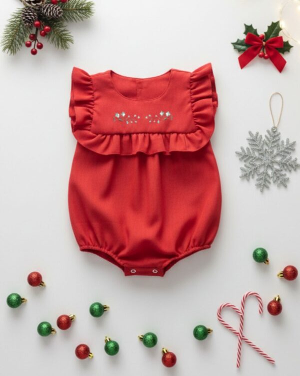 Com modelagem ampla, elástico nas pernas e abertura com botões de pressão para facilitar a troca de fraldas, este romper une praticidade e estilo — ideal para as festas de fim de ano.