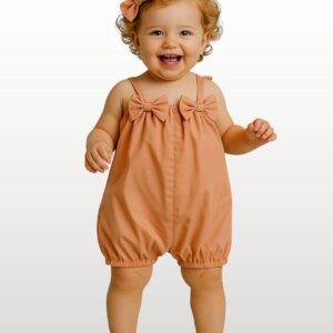 Apresentamos nosso lindo Romper Laura, confeccionado em Tricoline 100% Algodão, oferece frescor e durabilidade, perfeito para os dias mais quentes. O romper possui alças reguláveis e um lindo lacinho confeccionado em meia de algodão para as bebês e presilha, para as meninas.