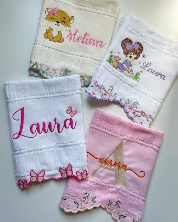 Cada peça bordada é feita com carinho e atenção aos detalhes. Nossas toalhas são confeccionadas em algodão Premium. São hipoalergênicas, livres de componentes tóxicos.